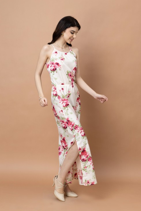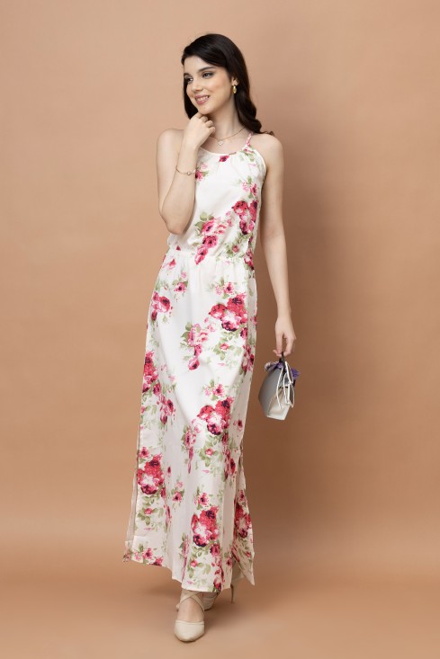 Floral Printed Noodle Strap Maxi Dress