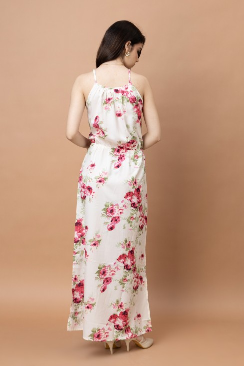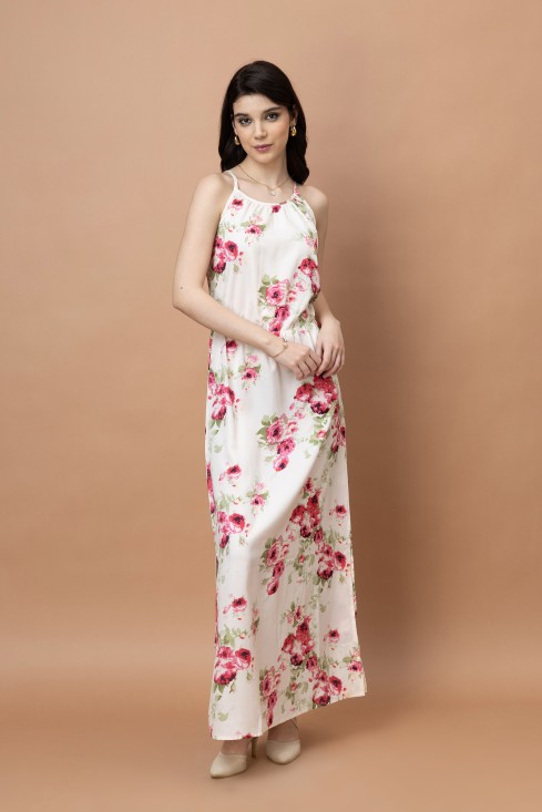 - Floral Printed Noodle Strap Maxi Dress