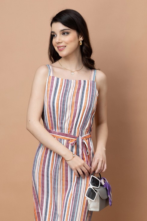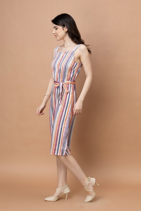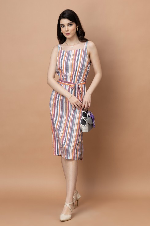 - Stripes Printed Straight Dress