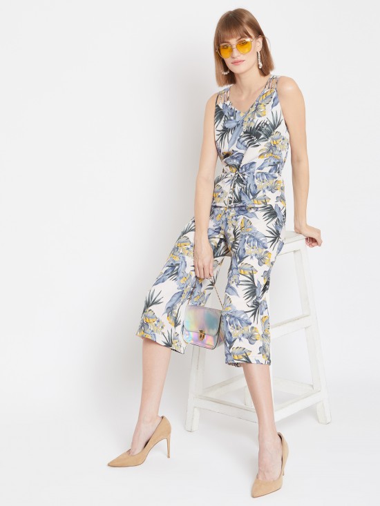 - Tropical Print Culotte Style Jumpsuit