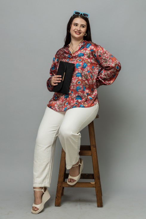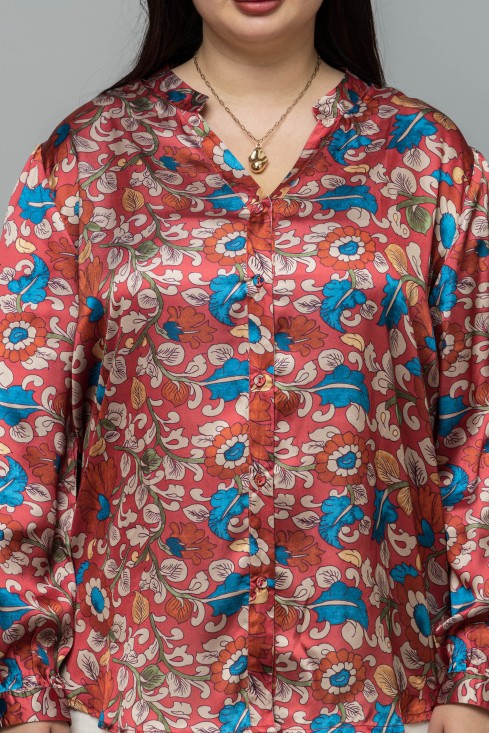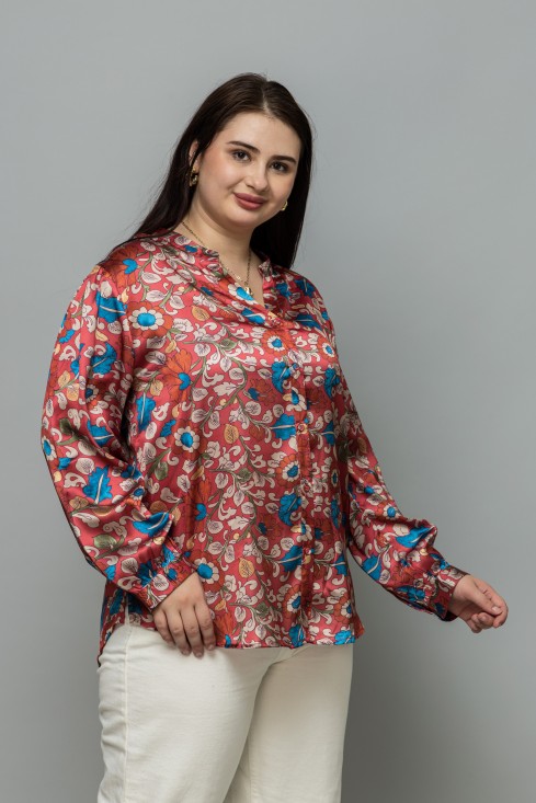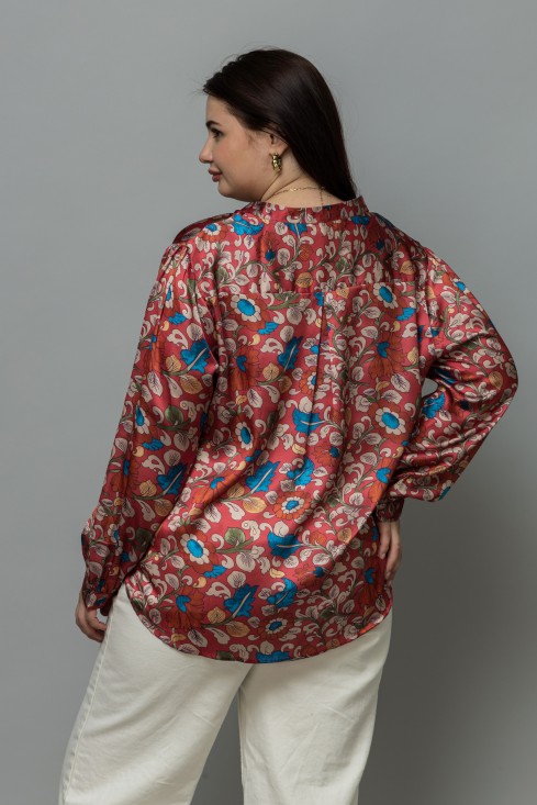 Band Collar Casual Satin Shirt