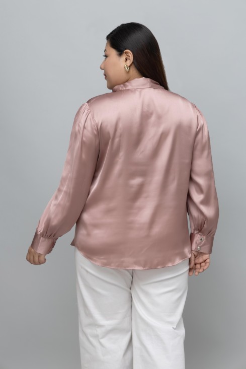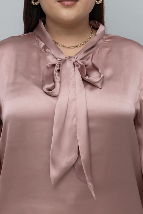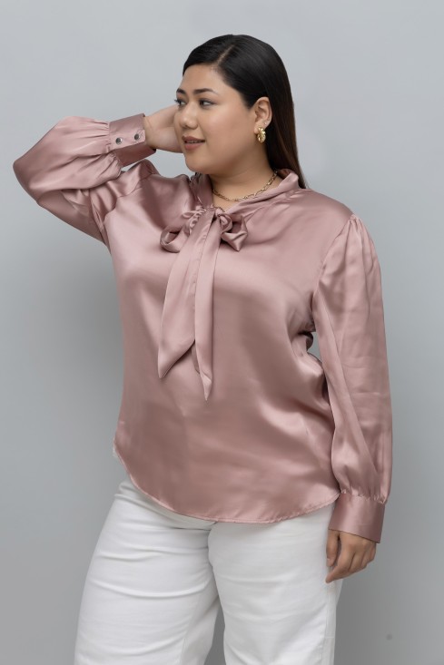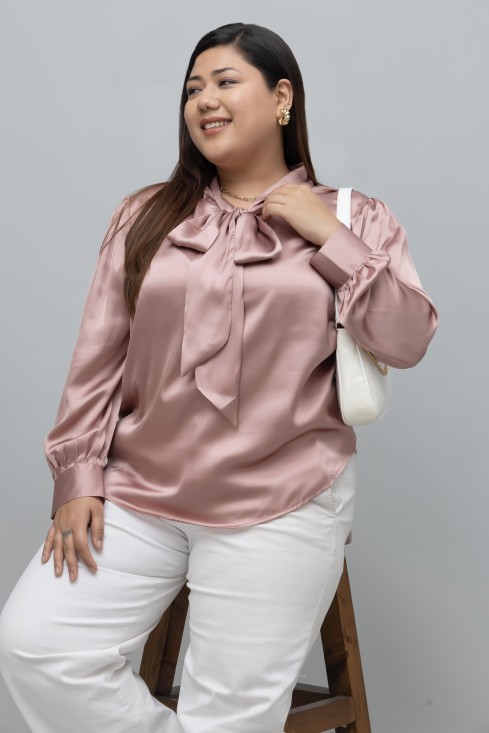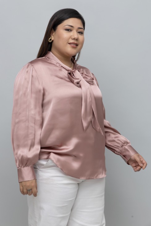 SOLID SATIN TIE NECK TOP