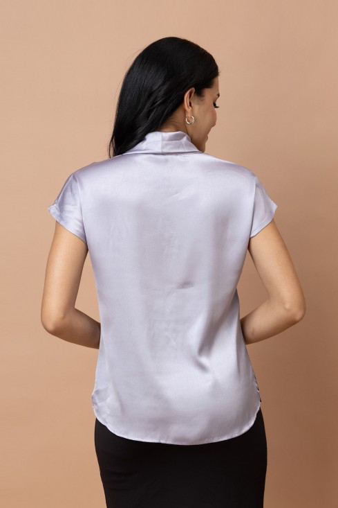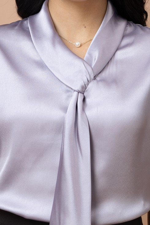 Tie-Up Neck Kimono Sleeves Casual Satin Top
